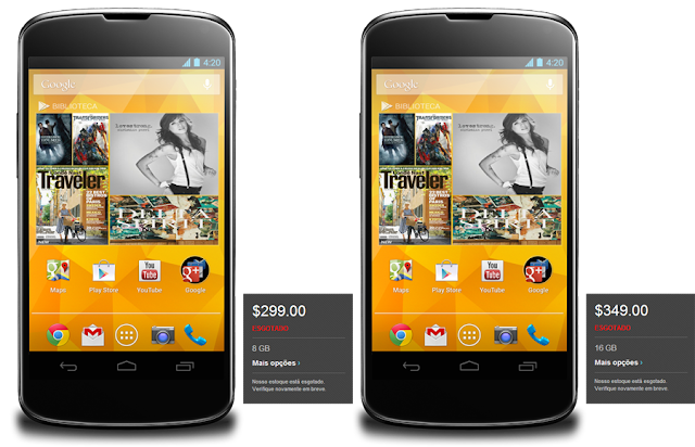 Nos Estados Unidos, os dois modelos disponíveis do Nexus 4 (8 GB e 16 GB) foram rapidamente esvaziados do estoque, algo em torno de 30 minutos. E se você está se perguntando o porque dessa movimentação tão grande, é que o motivo para as vendas serem tão expressivas está no valor dos dispositivos (US$ 299 e US$ 349, respectivamente), o que é um preço extremamente baixo para um dispositivo com suas especificações.