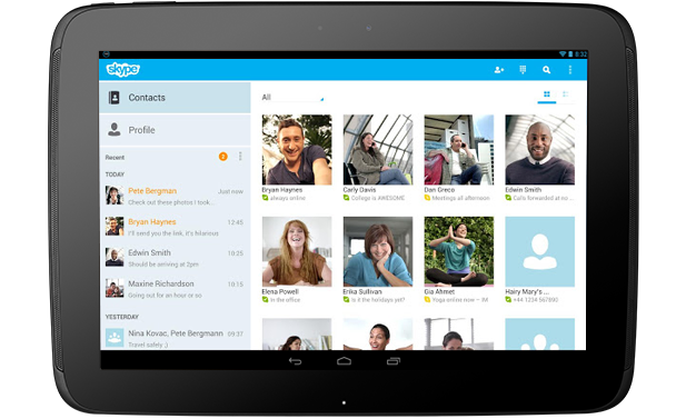 Atualização do Skype para Android traz melhorias para dispositivos e foi optimizado para Tablets com nova interface.